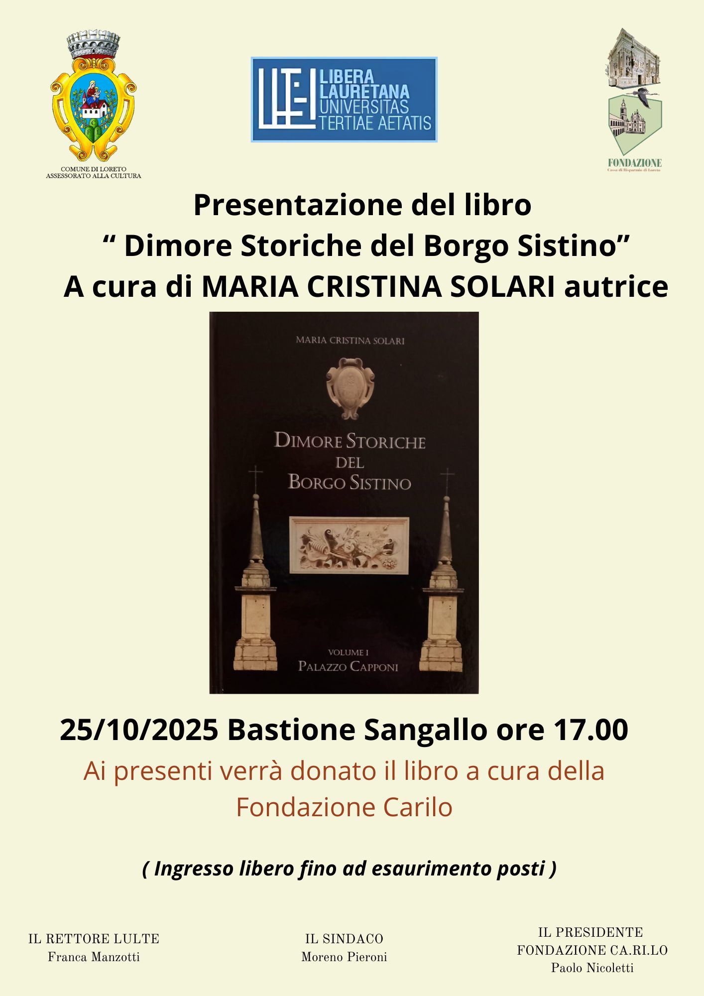 Presentazione presso il Bastione Sangallo, Piazza Garibaldi 1 Loreto (AN) - Ingresso libero fino ad esaurimento posti - ore 17 il 25/10/2025