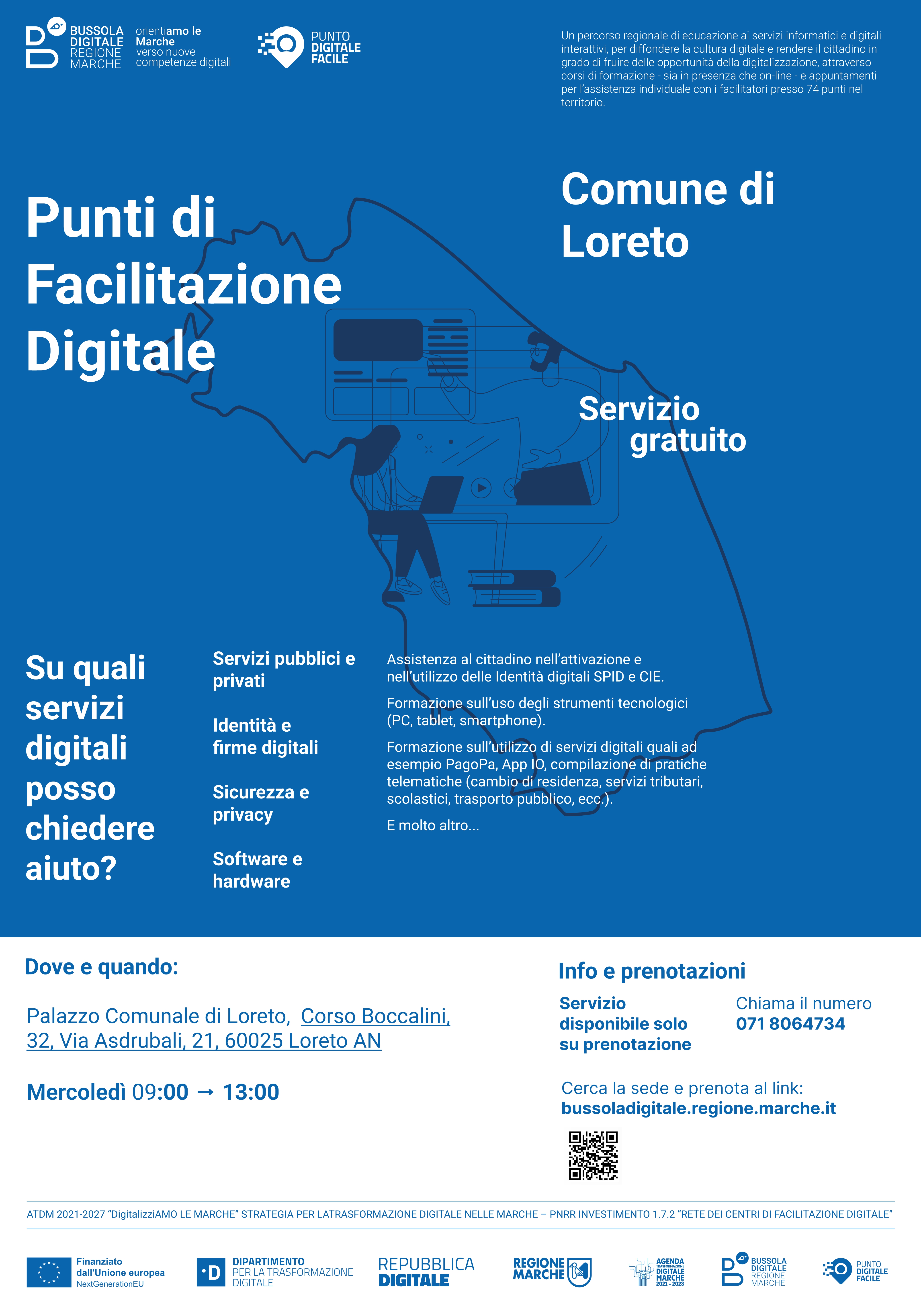 Punto di facilitazione Digitale a Loreto. Assistenza gratuita SPID, CIE, PagoPA, Pratiche telematiche, Tributi, Trasporti e altro...